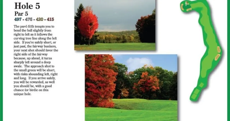 As evaluated in 2023 by the Metropolitan Golf Association, the course plays to the following ratings: